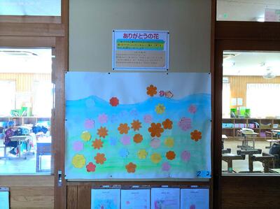 下の写真のように、1週間後にはたくさんの花が台紙に貼られ、児童が楽しみながら進んで本活動に取り組んだことが良く分かりました。