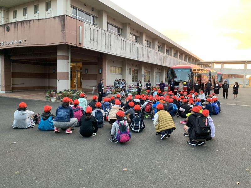 到着場所は出発の時と同じ正門から中庭付近となります。
