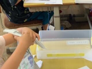 1年生は、いろいろな紙を自由に破いて、見えた形から想像を広げての造形活動、5年生は、米の生産の盛んな庄内平野を取り上げて、米作りに関わる方々の工夫や喜びなどを調べて学ぶ学習でした。