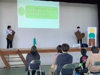 オープニングでは、吹奏楽部の見事な演奏(「鬼滅の刃「紅蓮華」♪♪他)に続いて、代表生徒による「学校紹介」、そして「英語寸劇」があり、高校生活の様子を、子供達に分かりやすく、ユーモアも交えながら伝えてもらいました。