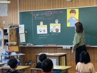 2年生の教室では、学級担任と本校の学校栄養士による「朝ごはんのひみつを見つけよう」という学習でした。朝ご飯を食べることの大切さを学んだようです。