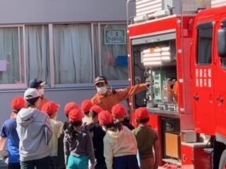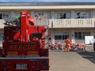 今日は3年生が社会科学習単元「火事から人々を守るために」で、実際に消防署の皆様に学校に来ていただいての学習がありました。