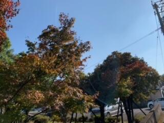 この秋も学校の体育館前から正門にかけての樹木コーナーのキンモクセイが満開となり、いい匂いを放っています。あわせてモミジも色づきはじめています。