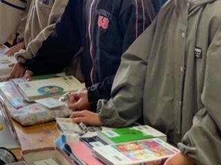 本校では11月を「読書月間」として設定し、読書に親しむ期間としています。いろいろなジャンルの本(絵本や伝記、英語本など)を読んでもらいたいので、「ブックビンゴ」に取り組んだり、家庭でも一層本に親しむよう「家族読書」を薦めたり等の取組を行っています。図書委員の皆さんも頑張っています。