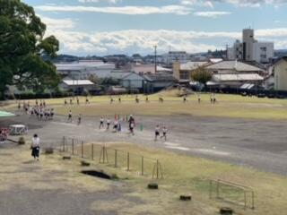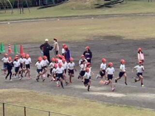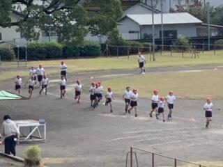 運動場では、3年生がサッカー(ボール蹴り運動)の学習の前に、長い距離を走る(持久走)練習をしていました。校内持久走大会は12月2日(木)午前中に、高学年⇒中学年⇒低学年の順で開催を予定しています。