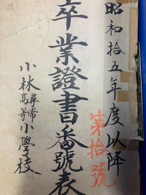 昭和47年に刊行された「小林小学校創立百年の歩み」には、5行ほど沖縄からの疎開の記述が書かれてありました。また、「昭和19年度卒業生台帳」には、6年生男女あわせて40数名の方々のお名前が記述されてありました。昭和7年4月から昭和8年3月生まれの、現在88歳、89歳の方々です。