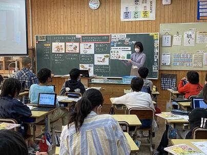 今日は、外国語専科教員が「一人1実践授業公開」で、5年生の学習を進めていました。ALTの先生と共に、子どもたちが楽しく学習に参加していました。