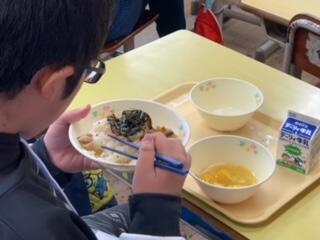 今日の給食は、「県産農畜水産物応援消費推進事業」の一環で、『みやざき地頭鶏(じどっこ)』が食材として提供されました。メニューは、【みやざき地頭鶏の照り焼き丼・きざみ海苔・かねんしゅい・牛乳】でした。子供たちも「みやざき地頭鶏」の提供に感謝しながら、照り焼き丼をおいしくいただいたことと思います。