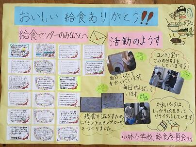 先週21日(金曜日)に、毎日の給食でお世話になっている学校栄養士の先生を通して給食センターの皆様に、給食委員会の子供たちが感謝のメッセージカードを届けました。
