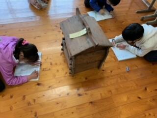 本来ならば、野尻町歴史民俗資料館の見学、または資料館の方に学校に来ていただいてお話を聞くなどの学習を計画していたのですが、このコロナ禍でそれも叶わず、直接、教室に昔の道具を持ち込んで、教科書や副読本、資料などで調べながら学習を進めています。子供たちはそれらの道具について調べを深め、昔の方々の知恵や工夫がたくさん詰まっていることに気づくことでしょう。