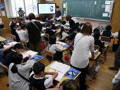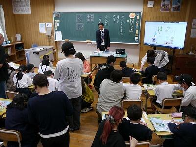 3校時は下学年の参観授業、4校時は上学年の参観授業を参観していただきました。算数や図工、音楽、道徳など教科はそれぞれでしたが、どの学年も、先生の話をよく聞いて、楽しく学習や活動に取り組んでいました。保護者と触れ合いながら行う活動もあり、子どもたちはとても楽しく授業に参加していました。