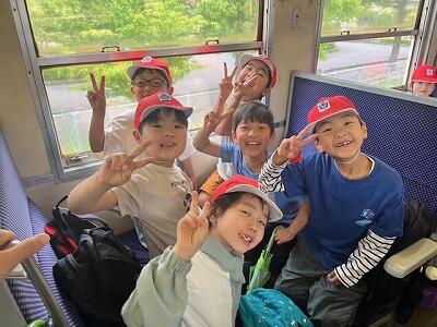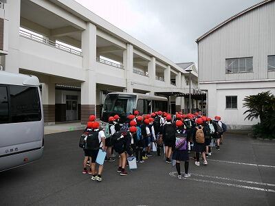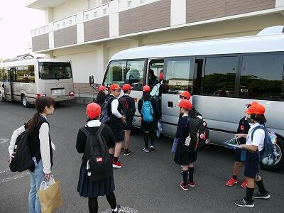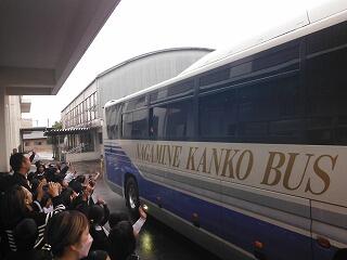 バスに乗り込むと、たくさんの保護者の方々や先生方、在校生に見送られて、元気に出発していきました。