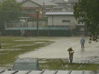 お昼過ぎには、運動場が白くなってきました。
