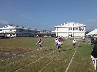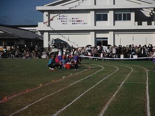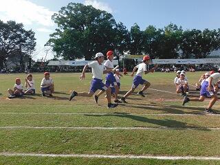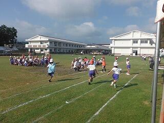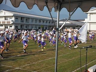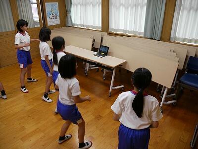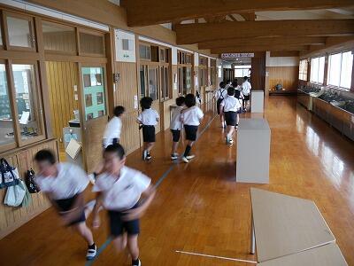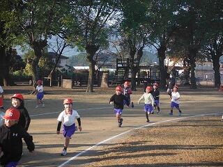 子どもたちは、まず準備運動をして、説明を聞いた後、5分間の持久走に取り組みました。初めはにこにこ張り切って走っていましたが、終わり近くになると苦しそうな表情の子どもたちもいましたが、最後までがんばって走る姿が見られました。