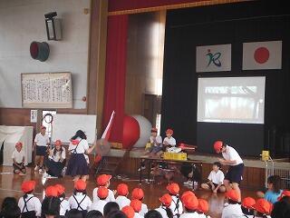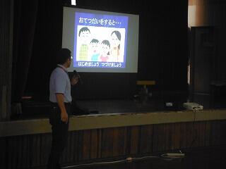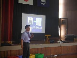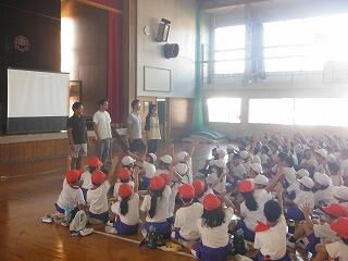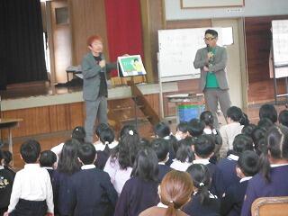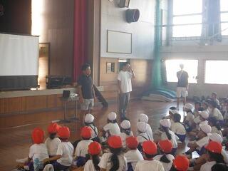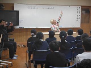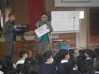 2校時の学校保健委員会では、「メディアとの上手な付き合い方」として、本県出身の「チキンナンゴー」さんをお呼びして、全校児童と保護者を対象に講演をしていただきました。さすがプロのお笑いコンビで、たくさんの笑いを誘いながら、メディアとの付き合い方について分かりやすく伝えてくれました。