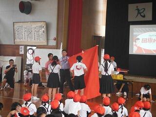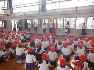 集合後、体育館で「出発式」を行いました。