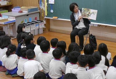 南小学校では、環境づくりだけではなく、読み聞かせや親子読書の取組、すきま時間の読書奨励、市立図書館の見学、地区の方からの図書提供などを進めています。