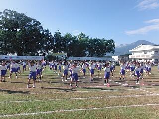 朝は、タイピングコンテスト、2~4校時は長縄大会、午後は玉名高校吹奏楽部によるコンサートがあります。