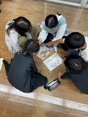 今回の交流では、5年生が準備を進めている「保育園交流」に向けて、保育園児のために準備した遊びをよりよいものにするための活動に一緒に取り組んでもらうことにしました。