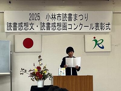 令和7年度の小林市読書まつりで読書感想文・読書感想画コンクールの表彰式が行われました。