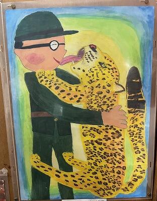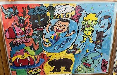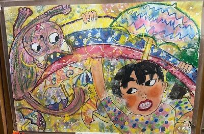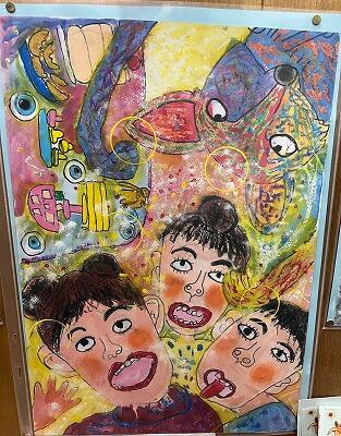 表彰式会場の隣の図書館では、感想画を展示していました。