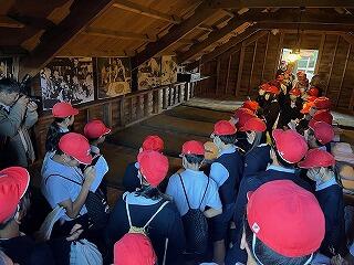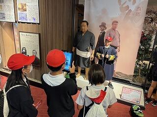 最初の目的地「維新ふるさと館」に到着しました。班ごとに、いろいろな資料を見たり聞いたりしながら、明治維新で活躍した人物について学びました。特に、シアターでは、幕末から明治にかけての歴史の流れをロボットなどの多彩な演出があり、とても興味をもって見られたようです。