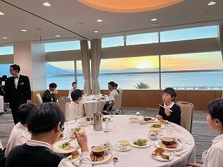宿泊先である「マリンパレスかごしま」に到着しました。とてもきれいなホテルで、子どもたちから歓声が上がりました。各部屋ごとに、荷物の整理などをして過ごしました。入浴を済ませて、夕食を食べました。みんな楽しみにしていた夕食はとてもおいしかったようで、もりもり食べました。