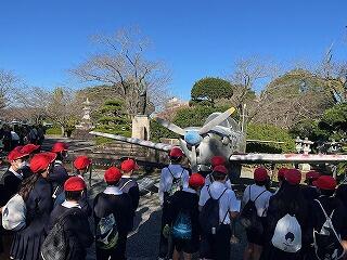 最初の目的地である「知覧特攻平和会館」でした。先生当時の状況や特攻隊員の方々のことを、遺書などで学びました。今の自分たちが当たり前にできていることが、いかに恵まれているかを学びました。