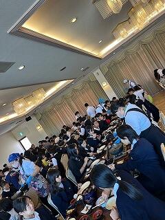 校長先生の話の他、代表児童のことばや同行してくださる方々の紹介などがあり、今回のスローガン「当たり前の壁を越え、当たり前に感謝し、宇宙一の修学旅行にしよう!」を再確認しました。