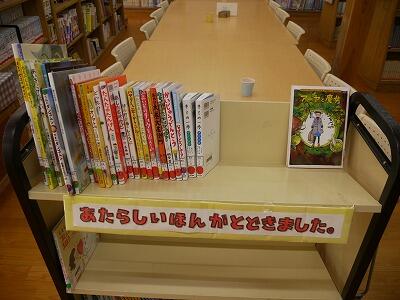 新しく入った本のコーナーがあります。だいぶ貸し出されているようです。