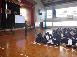 成澤さん自身がこれまでの経験を踏まえて感じたことや考えていることなどを、子どもたちの質問も受けながらユーモアあふれる語りで分かりやすく話してくださいました。