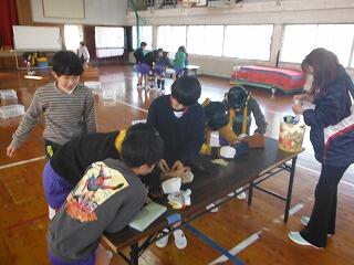 参観授業の後に、おうちの人と一緒に食べるドーナツを作っていました。