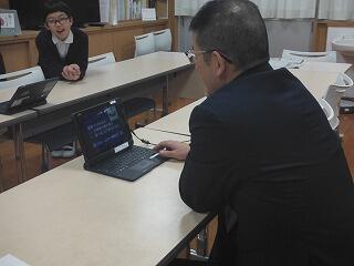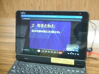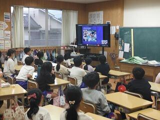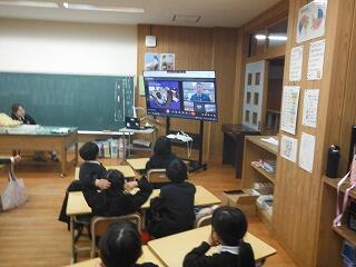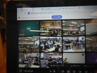 12月24日(水)に、冬休み前最終日の全校朝会を行いました。インフルエンザ感染予防、寒さ対策として、校長室と各核教室をオンラインでつないで行いました。