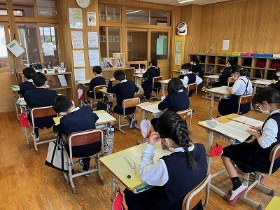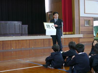 校長からは、「明るく、仲の良いクラスにするために、話をよく聴くことを大切にしてほしい」という話をしました。(みんなよく聴いていました)