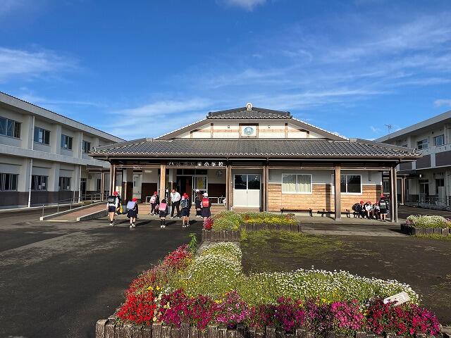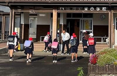 児童玄関前では、「おはようございます!」の声がとびかっています。