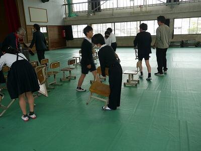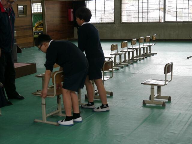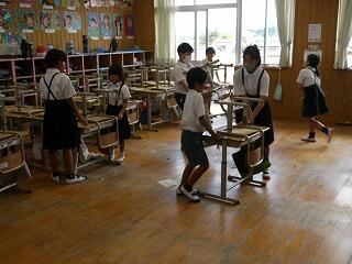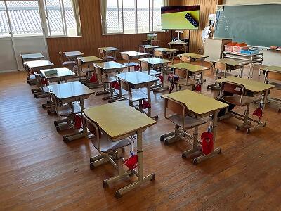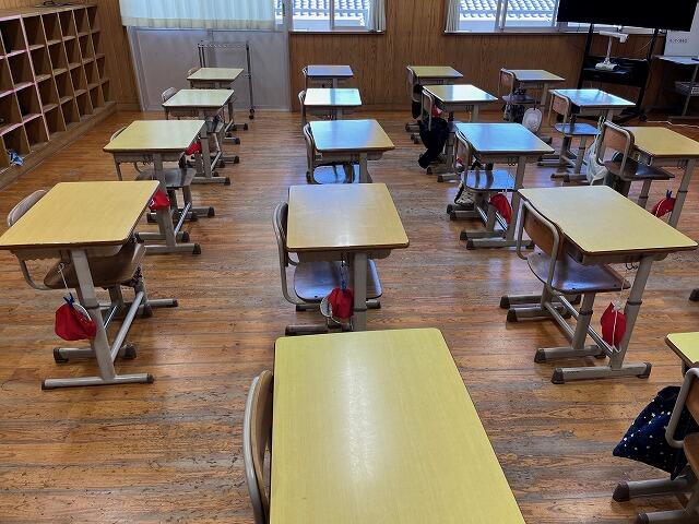 多くの教室で、児童がいないときに、椅子が机に入れてあるのです。