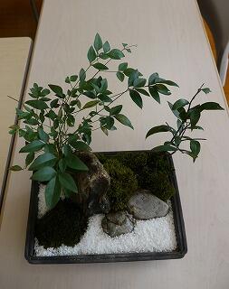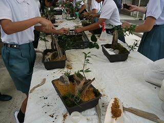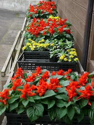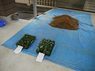 会場に飾る鉢の花柄摘みをしています。少しでもきれいな状態の花を飾るためです。