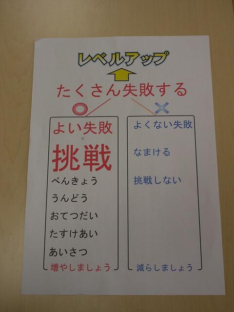 「校長先生の話」では、スポーツでも勉強でもできるようになるためには、2つのことが大切だという話をしました。