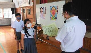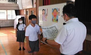 今日は1学期終業の日でした。終業式において校長先生から、いろんな行事が中止・制限される中、新しい生活様式を取り入れながら、全員無事1学期を終えられることを称える話がありました。2名の代表児童は、1学期がんばったこと、2学期がんばることの発表を行いました。1学期間で、新聞投稿により掲載された作文、俳句、イラストは14作品となりました。明日から4日間の秋休みです。リフレッシュして、14日の2学期スタートに備えてほしいです。