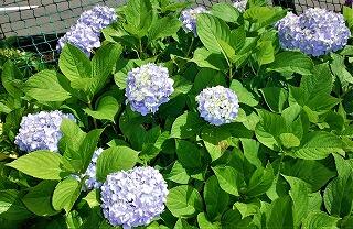 新緑がまぶしい季節となりました。運動場の木々も青々としています。この梅雨の晴れ間の中、2年生はミニトマトの成長の観察をしていました。校内を見回すと、あじさいがきれいに咲いている場所があります。さて、それはどこでしょうか。明日から6月です。