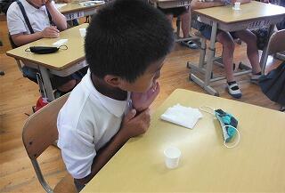 今日の朝は、全学年で、来週から開始するフッ化物洗口の練習を行いました。フッ化物洗口とは、むし歯予防のため、フッ化物溶液を口に含んでぶくぶくうがいを行う方法のことです。今回は、流れを確認し、ぶくぶくうがいの仕方を学ぶために、フッ化物溶液ではなく、水を使って行いました。各学年ともしっかり指導し、無事終えました。このフッ化物溶液は飲まないよう指導しますが、誤って飲み込んでしまっても心配はないそうです。むし歯の児童が少しでも減るよう、これから毎週水曜日の朝にフッ化物洗口に取り組んでいきます。