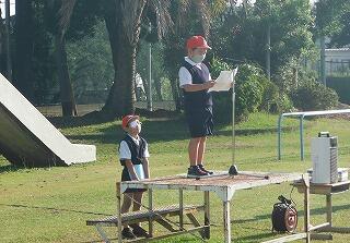 今日から2学期スタートです。1時間目の始業式は、快晴の下、運動場で行われました。校長先生からは、新しい生活様式を継続しながら、2学期は「返事」をしっかりすることのお話がありました。2名の代表児童は、2学期がんばりたいことを堂々と発表しました。勉強に運動によい気候になりました。充実した「実りの秋」にしてほしいです。