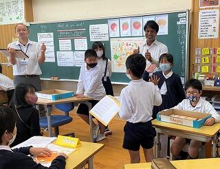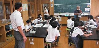 今日は、2年生が生活科の学習でまちたけんに出かけました。校区内のいろいろなお店を見て回りました。赤松通りでは、鯉が出迎えてくれました。暑い中でしたが、無事行程を終えました。また、5年生の理科の学習では、県教育研修センターよりサイエンスアドバイザーの先生2名が来られて、メダカの卵の観察の仕方について指導していただきました。2学年とも充実した学習をすることができました。