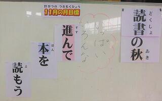 今朝は、体育館で全校朝会が行われました。11月の月目標は、「進んで本を読もう」です。図書委員会が、図書に関するクイズと11月の取組について発表を行いました。南小図書室にはなんと1万冊以上の本が置いてあるそうです。これにはみんなびっくりしていました。各学級に読書の木を掲示し、葉っぱのカードでいっぱいにしていくようにしていくことを確認しました。校長先生からは、2学期の目標である「返事」がしっかりできるために、きまりを守ることが大切であることの話がありました。来週から11月です。本に親しみ、しっかり返事のできる11月になるといいです。