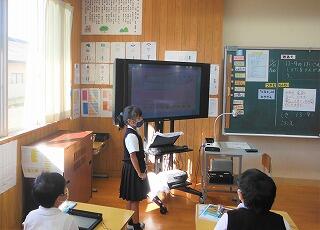 今はICTの時代です。1年生の算数の授業では、タブレットPCを使った授業が行われていました。自分の考えを書き込み、それをみんなで共有し、自分の画面を見せながら説明する、という活動がスムーズに流れていました。確実に学力向上につながるアイテムです。小林市では、今年度中にタブレットPCが児童一人に一台渡ることになるそうです。