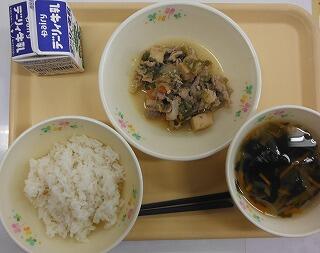 本日の給食は「小林市地産地消の日」メニュー、豚肉となすのみそいため、すまし汁でした。大変おいしかったです。これから時々、給食を紹介していきます。