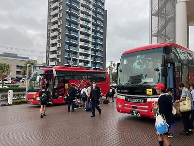 バスに乗り込んで、知覧特攻平和会館に向かいます。