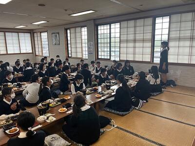 いつも掃除などで一緒に活動している縦割り班でお弁当を紹介し合い、一緒に食べました。