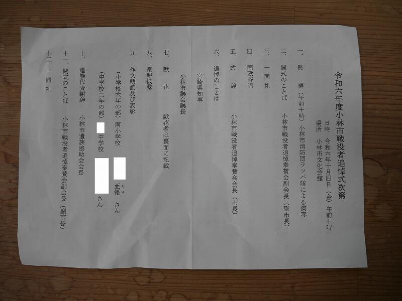 小林市は、毎年この時期に行い、戦没者の追悼をし、「戦争をしない」という思いを新たにしています。