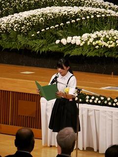 式典の中、落ち着いた声で作文を読んでいきます。